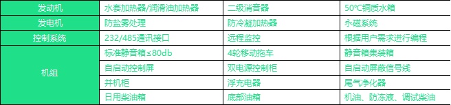 机组标准配置(国标GB/T2820标准执行生产)