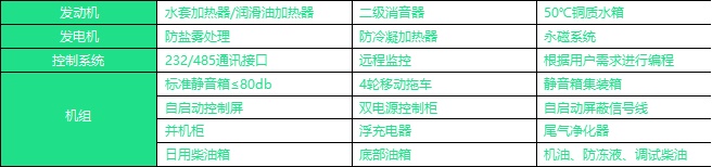 机组标准配置(国标GB/T2820标准执行生产)
